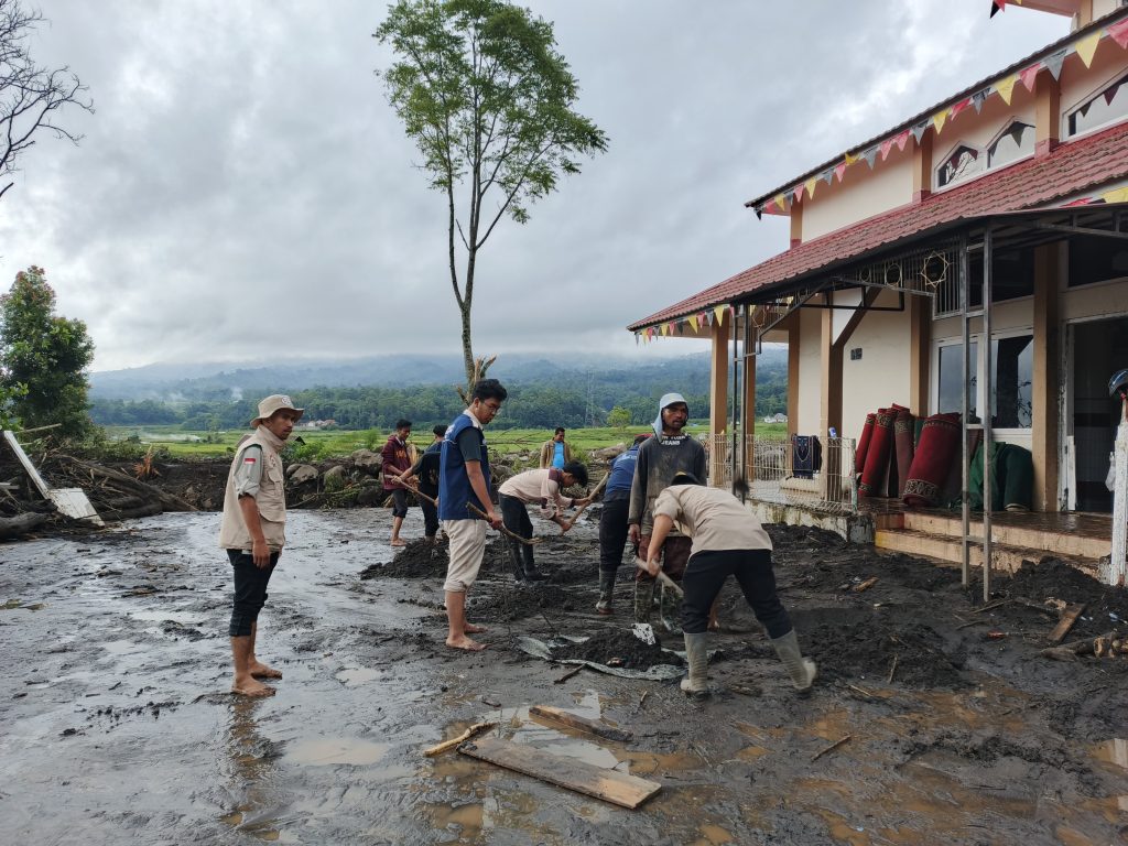 Proses pembersihan masjid dilakukan atas bantuan Pemadam dan juga TNI, baik dari segi menyingkirkan bebatuan besar dengan escavator ataupun menyemprotkan air ke area sekitar mesjid yang terkena lumpur. selain itu masyarakat juga ikut serta membantu dengan beberapa alat seadanya seperti cangkul, sekop , dan peralatan lain yang mendukung