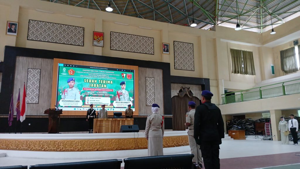 Resimen Mahasiswa Satuan 116 Mahabraja UIN Bukittinggi sukses melaksanakan Serah Terima Jabatan (Sertijab) di Student Center Ibnu Rusyd, pada Minggu, 20 April 2025.