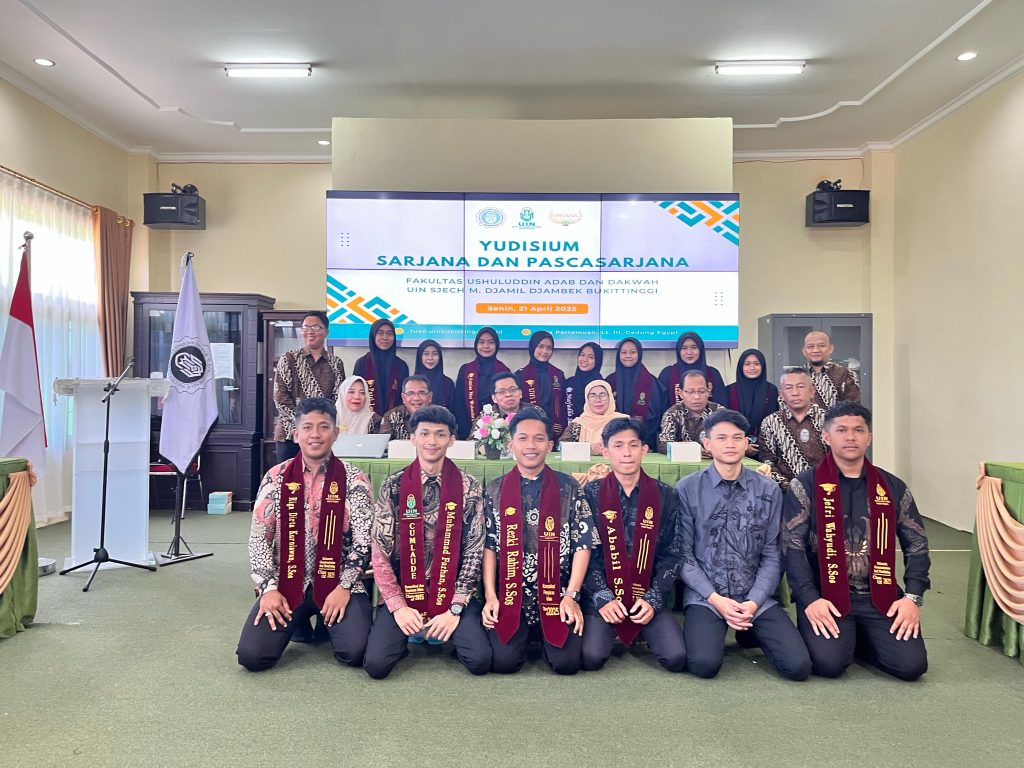 Bukittinggi – Fakultas Ushuluddin, Adab, dan Dakwah (FUAD) UIN Sjech M. Djamil Djambek Bukittinggi menggelar Yudisium ke-9 secara khidmat pada Senin, (21/04/2025), bertempat di Aula Lantai 3 Gedung Egypt. Sebanyak 75 orang calon wisudawan/wisudawati dari enam Program Studi S.1 dan 2 orang calon wisudawan/wisudawati dari Program studi S.2 Aqidah Filsafat Islam resmi dinyatakan lulus dan siap mengikuti prosesi wisuda.