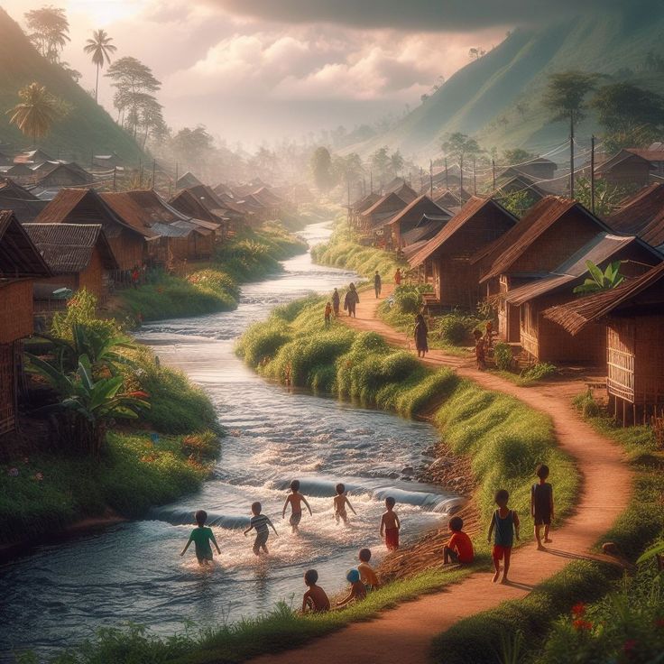 Keesokan harinya, warga kampung pun mulai memperhatikan aktivitas mereka. Anak-anak membawa kantong sampah, para ibu menanam kembali bibit pohon di pinggir sungai, dan para ayah membuat papan sederhana bertuliskan: “Sungai Bersih, Amanah Kita Bersama.”