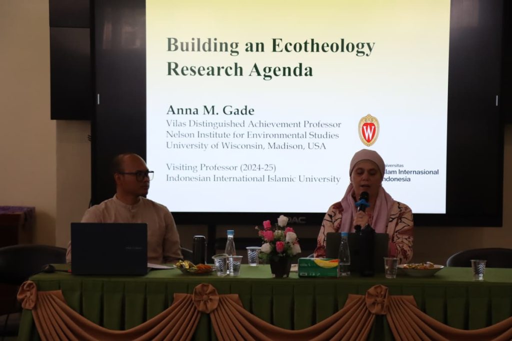 Diskusi akademik kemudian menghadirkan Prof. Anna M. Gade, Ph.D., akademisi dari University of Wisconsin–Madison, Amerika Serikat, yang dikenal luas melalui karya-karyanya dalam kajian ekoteologi dan environmental humanities. Dalam pemaparannya, Prof. Gade menjelaskan bahwa persoalan lingkungan global, seperti perubahan iklim dan ketidakadilan ekologis, tidak dapat diselesaikan hanya melalui pendekatan teknis dan kebijakan, tetapi juga membutuhkan kerangka etika dan refleksi teologis yang kuat.